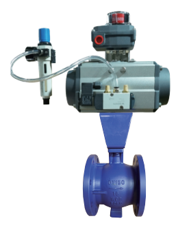 In the process of ball rotation, there is a wiping effect between the closed parts, the medium has a strong cut-off force, the ball's V-type opening and the valve seat flow path to form a fan-shaped area, in the process of rotating to change the cross-sectional area of the flow path, the formation of precise adjustment of the medium, which is a kind of angular rotary control valve, its sealing performance is the same as the ordinary ball valves, so that it has the same time with the regulation and switching of the two functions, with pneumatic or electric actuators, widely used in the industrial process of self-control system. With pneumatic or electric actuator, widely used in industrial process automatic control system.